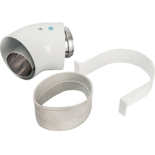 Элемент дымохода Stout (Стаут) отвод коаксиальный 45° DN60/100, п/м уплотнения и хомут в комплекте (с логотипом) (SCA-6010-000045)