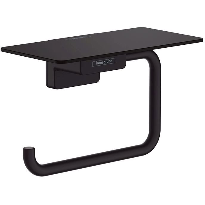 Держатель для туалетной бумаги Hansgrohe (Хансгрое) AddStoris с полкой, черный матовый, 41772670