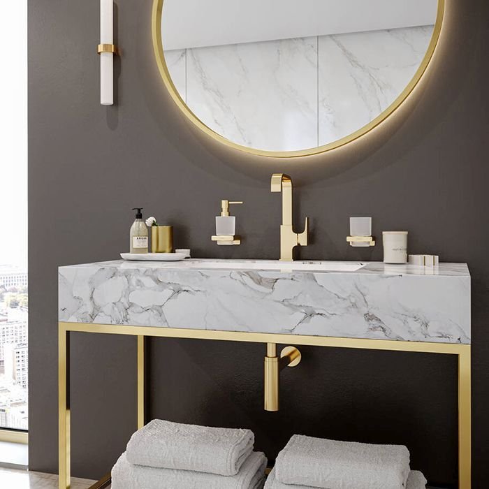 - Эстетика и стиль: Полированное золото не только привлекает внимание, но и легко сочетается с различными отделками и сантехникой, добавляя изысканности и шика.
