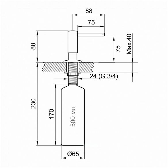 Дозатор для кухонной мойки Granula (Гранула) 018 D, ГРАФИТ (ЧеРНО-СЕРЫЙ)