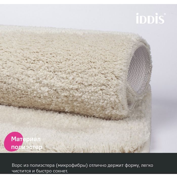 Мягкий коврик для ванной теплого бежевого цвета с плотным высоким ворсом (2 см), очень приятный на ощупь. Стриженый ворс из микрофибры отлично держит форму, легко чистится и быстро сохнет. Коврик подойдет для ванной и туалета. • Этот коврик в ванную противоскользящий: основа из экологичной термопластичной резины (TPR) позволяет не скользить на гладком и влажном кафеле. Подходит для использования в помещениях с теплыми полами. • Благодаря современным влагостойким материалам и качественной обработке краев коврик не потеряет яркости красок, не обветшает и надолго останется привлекательным как в день покупки. • Несложно ухаживать: разрешена деликатная стирка при температуре до 40 градусов с жидким моющим средством; не сушить на батарее, избегать солнечных лучей. Гарантия на текстильные аксессуары Iddis® – 1 год. (с) Авторский текст, август 2023 г.
