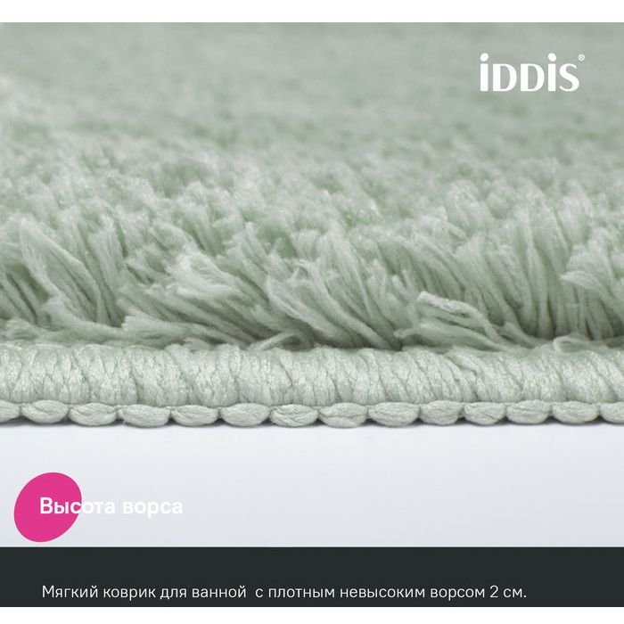 Мягкий коврик для ванной светло-зеленого цвета с плотным высоким ворсом (2 см), очень приятный на ощупь. Стриженый ворс из микрофибры отлично держит форму, легко чистится и быстро сохнет. Коврик подойдет для ванной и туалета. • Этот коврик в ванную противоскользящий: основа из экологичной термопластичной резины (TPR) позволяет не скользить на гладком и влажном кафеле. Подходит для использования в помещениях с теплыми полами. • Благодаря современным влагостойким материалам и качественной обработке краев коврик не потеряет яркости красок, не обветшает и надолго останется привлекательным как в день покупки. • Несложно ухаживать: разрешена деликатная стирка при температуре до 40 градусов с жидким моющим средством; не сушить на батарее, избегать солнечных лучей. Гарантия на текстильные аксессуары Iddis® – 1 год. (с) Авторский текст, август 2023 г.