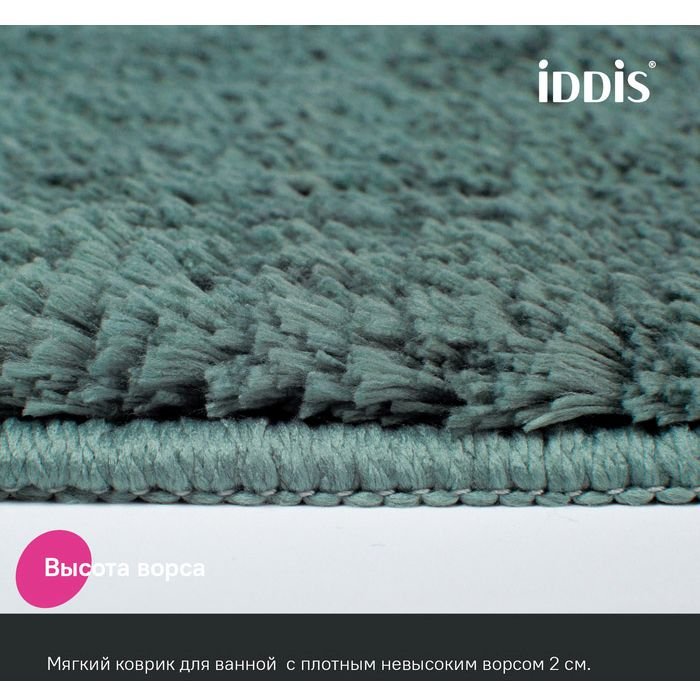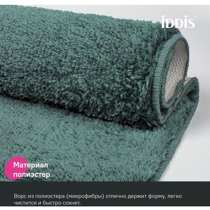 Мягкий коврик для ванной хвойного зеленого цвета с плотным высоким ворсом (2 см), очень приятный на ощупь. Стриженый ворс из микрофибры отлично держит форму, легко чистится и быстро сохнет. Коврик подойдет для ванной и туалета. • Этот коврик в ванную противоскользящий: основа из экологичной термопластичной резины (TPR) позволяет не скользить на гладком и влажном кафеле. Подходит для использования в помещениях с теплыми полами. • Благодаря современным влагостойким материалам и качественной обработке краев коврик не потеряет яркости красок, не обветшает и надолго останется привлекательным как в день покупки. • Несложно ухаживать: разрешена деликатная стирка при температуре до 40 градусов с жидким моющим средством; не сушить на батарее, избегать солнечных лучей. Гарантия на текстильные аксессуары Iddis® – 1 год. (с) Авторский текст, август 2023 г.