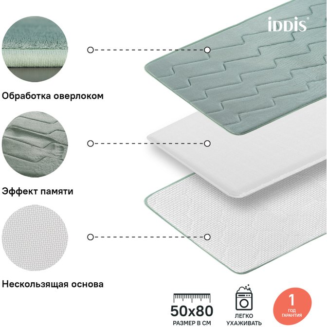 Доставка Коврик для ванной комнаты Iddis (Иддис) Basic 50х80 см B22P580i12 из Москва в районы и города ЮВАО, ЮЗАО, ЮАО, Новомосковский АО, Одинцово, Подольск, Щербинка, Троицк, Строительный рынок Славянский мир, 41-й км МКАД, бывшая Мельница, Красногорск, Домодедово, Тёплый стан, Коммунарка, Мосрентген, Видное, Мамыри, Краснознаменск
