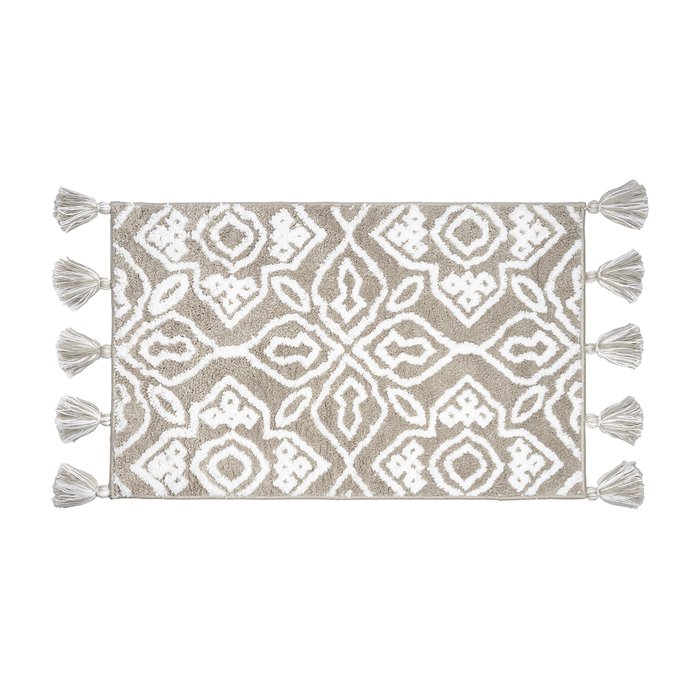 Мягкий бежевый коврик для ванной с декоративными пушистыми кисточками и белым узором, очень приятный на ощупь. Ворс из микрофибры отлично держит форму, легко чистится и быстро сохнет. Коврик подойдет для ванной и туалета, а также поможет создать уют в спальне или гостиной.