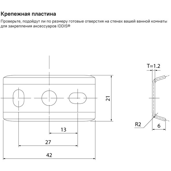 Крючок двойной Iddis (Иддис) Slide сплав металлов белый матовый SLIWT20i41