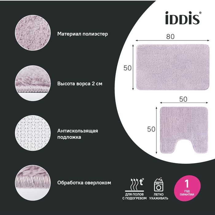 Доставка Набор ковриков для ванной комнаты Iddis (Иддис) 50х80 + 50х50 микрофибра розовый BSET04Mi13 из Москва в районы и города ЮВАО, ЮЗАО, ЮАО, Новомосковский АО, Одинцово, Подольск, Щербинка, Троицк, Строительный рынок Славянский мир, 41-й км МКАД, бывшая Мельница, Красногорск, Домодедово, Тёплый стан, Коммунарка, Мосрентген, Видное, Мамыри, Краснознаменск