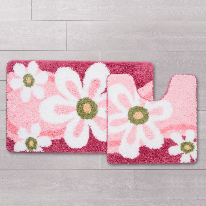 Набор ковриков для ванной комнаты на TPR основе, Акрил+полиэстер. Коллекция: Merry Camomile. Высота ворса: 10 мм; размер - 50*80 + 50*50 см. Упаковка - Полипропиленовый пакет.