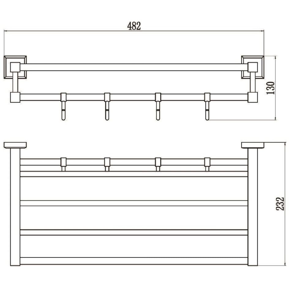 Полка для полотенец Savol (Савол) 50 см, 4 крючка хром S-509544