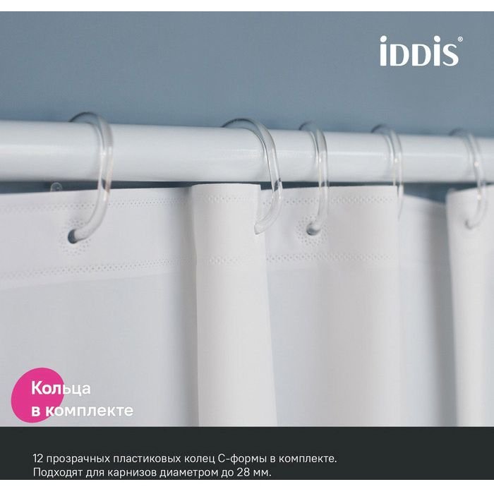 Доставка Штора для ванной Iddis (Иддис) 200x180 см PE белый P02PE18i11 из Москва в районы и города ЮВАО, ЮЗАО, ЮАО, Новомосковский АО, Одинцово, Подольск, Щербинка, Троицк, Строительный рынок Славянский мир, 41-й км МКАД, бывшая Мельница, Красногорск, Домодедово, Тёплый стан, Коммунарка, Мосрентген, Видное, Мамыри, Краснознаменск