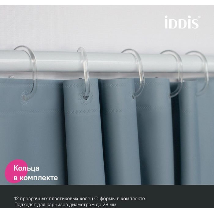 Доставка Штора для ванной Iddis (Иддис) 200x180 см PE светло-серый P09PE18i11 из Москва в районы и города ЮВАО, ЮЗАО, ЮАО, Новомосковский АО, Одинцово, Подольск, Щербинка, Троицк, Строительный рынок Славянский мир, 41-й км МКАД, бывшая Мельница, Красногорск, Домодедово, Тёплый стан, Коммунарка, Мосрентген, Видное, Мамыри, Краснознаменск
