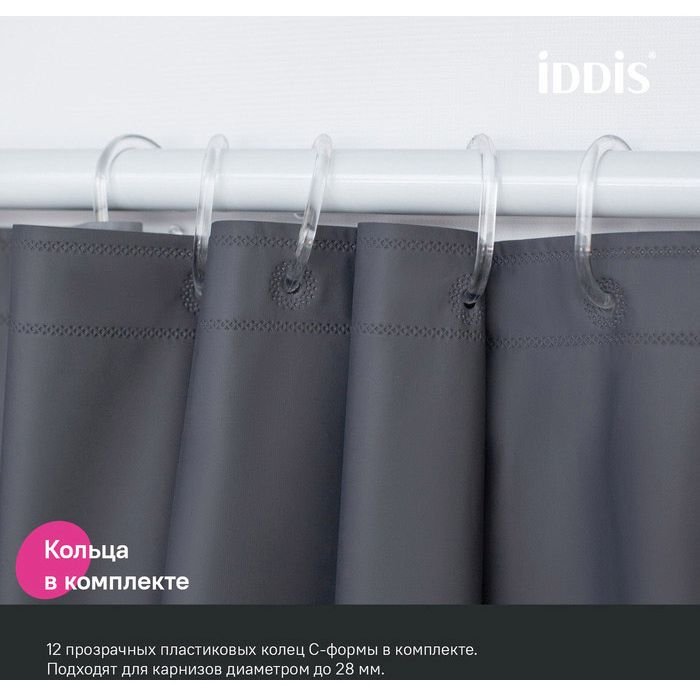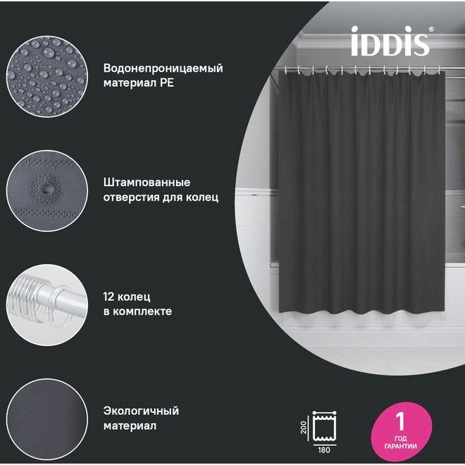 Доставка Штора для ванной Iddis (Иддис) 200x180 см PE темно-серый P03PE18i11 из Москва в районы и города ЮВАО, ЮЗАО, ЮАО, Новомосковский АО, Одинцово, Подольск, Щербинка, Троицк, Строительный рынок Славянский мир, 41-й км МКАД, бывшая Мельница, Красногорск, Домодедово, Тёплый стан, Коммунарка, Мосрентген, Видное, Мамыри, Краснознаменск