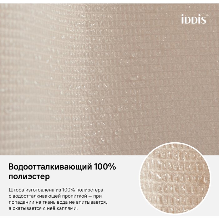 Доставка Штора для ванной комнаты Iddis (Иддис) Dcor 180х200 см D30P218i11 из Москва в районы и города ЮВАО, ЮЗАО, ЮАО, Новомосковский АО, Одинцово, Подольск, Щербинка, Троицк, Строительный рынок Славянский мир, 41-й км МКАД, бывшая Мельница, Красногорск, Домодедово, Тёплый стан, Коммунарка, Мосрентген, Видное, Мамыри, Краснознаменск