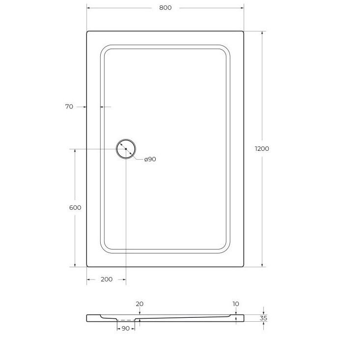 Душевой поддон SMC Cezares (Цезарис) Tray-M-RH-120/90-550-35-W-R, цвет белый 120х90х3.5 см