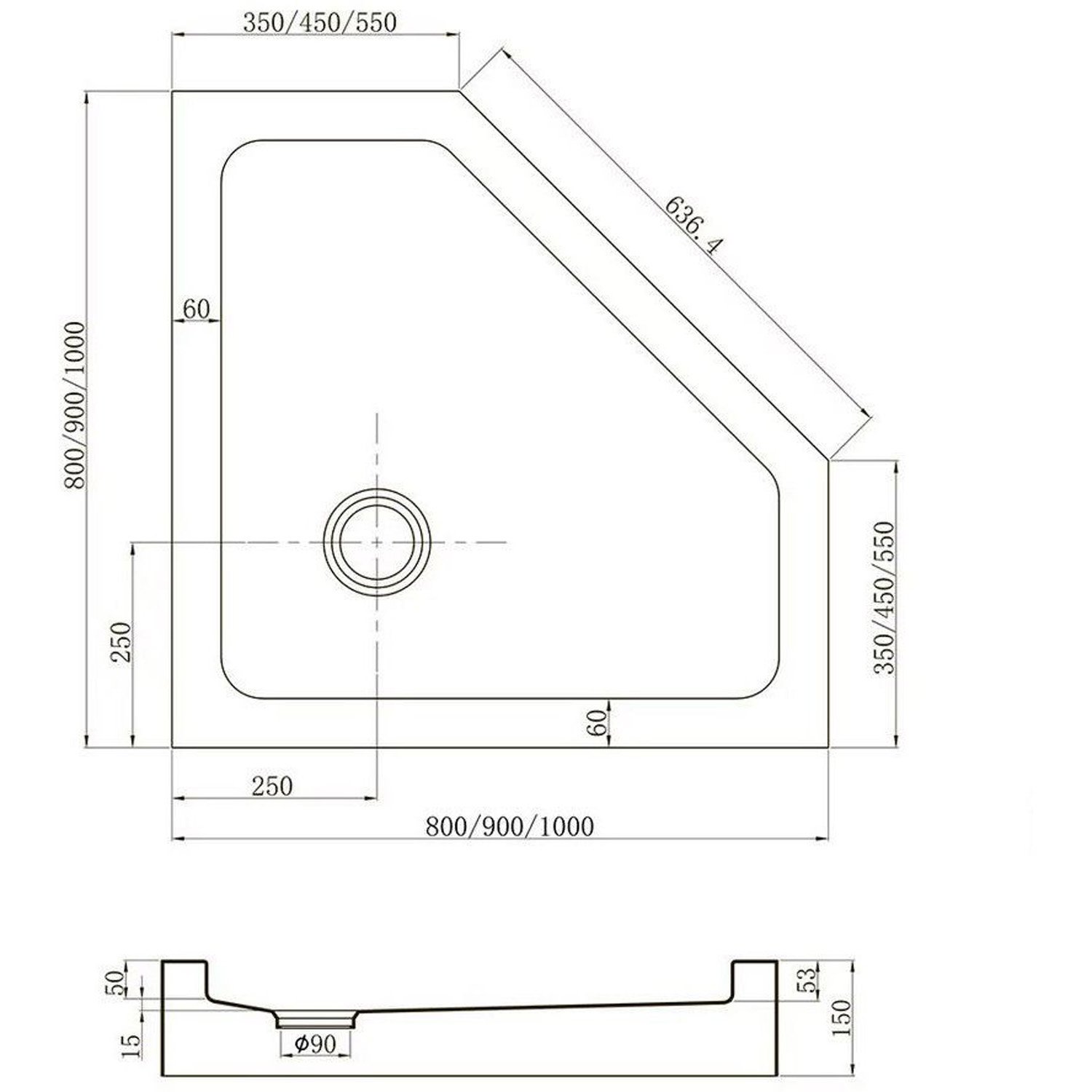 Поддон Veconi Tezeo TZ-53 пятиугольный. Душевой поддон пятиугольный(трапеция). Установка на регулируемые ножки. Материал: акрил. Цвет - белый. Усиленный литой экран. Антискользящее покрытие. Сифон в комплекте 90 Ø. Максимальная нагрузка на поддон 200 кг.