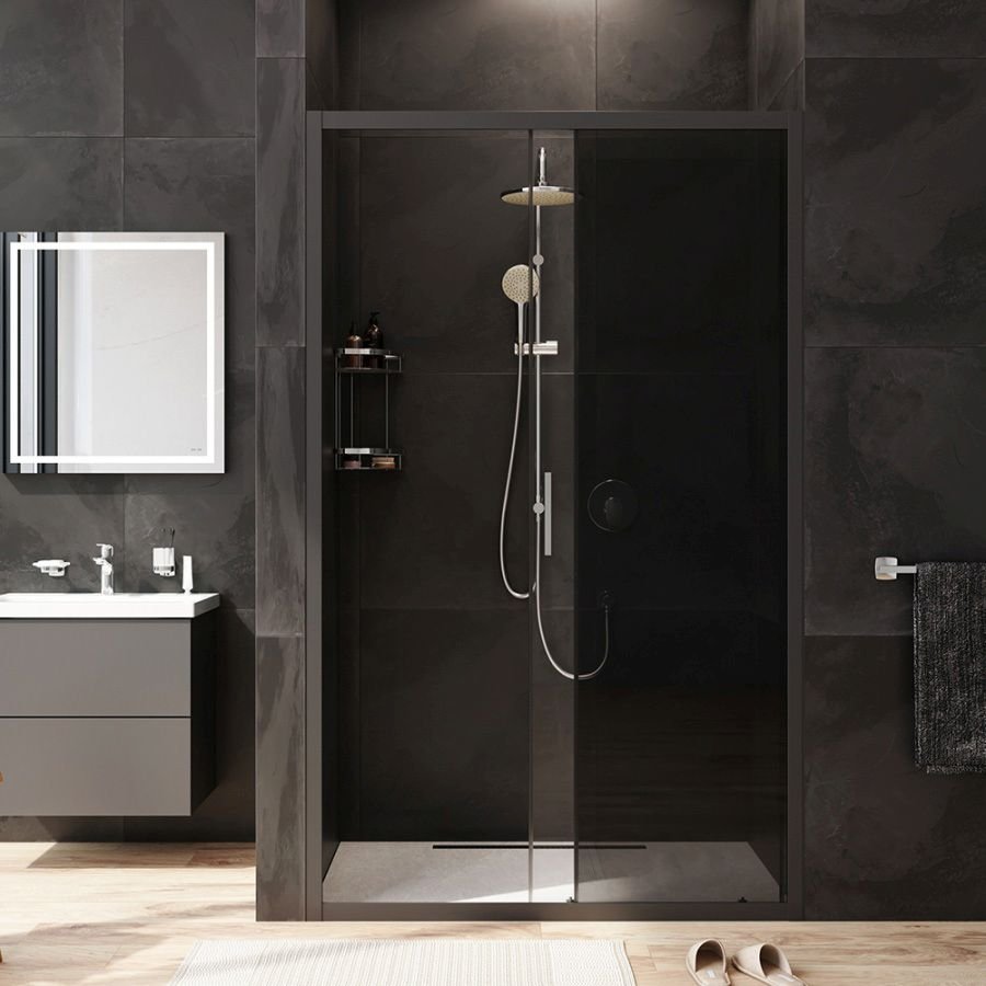 Доставка Душевая дверь Am.Pm (Ам.Пм) Gem Solo 120х195, стекло тонированное, профиль черный матовый W90G-120-1-195BG из Москва в районы и города ЮВАО, ЮЗАО, ЮАО, Новомосковский АО, Одинцово, Подольск, Щербинка, Троицк, Строительный рынок Славянский мир, 41-й км МКАД, бывшая Мельница, Красногорск, Домодедово, Тёплый стан, Коммунарка, Мосрентген, Видное, Мамыри, Краснознаменск
