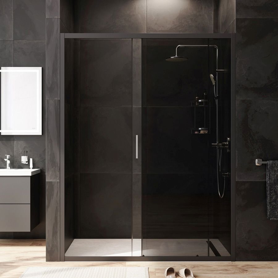 Доставка Душевая дверь Am.Pm (Ам.Пм) Gem Solo 150х195, стекло тонированное, профиль черный матовый W90G-150-1-195BG из Москва в районы и города ЮВАО, ЮЗАО, ЮАО, Новомосковский АО, Одинцово, Подольск, Щербинка, Троицк, Строительный рынок Славянский мир, 41-й км МКАД, бывшая Мельница, Красногорск, Домодедово, Тёплый стан, Коммунарка, Мосрентген, Видное, Мамыри, Краснознаменск