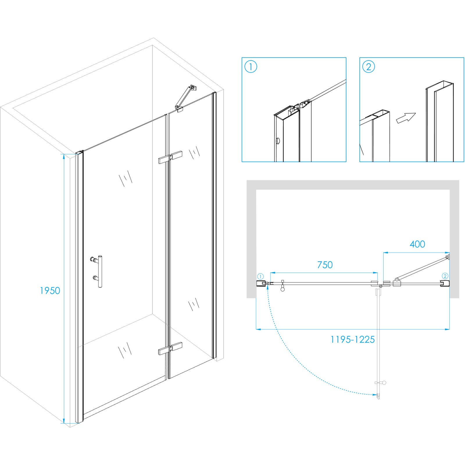 Душевая дверь RGW (РГВ) 120х195 см PA-07 B ″R″ Чёрный, Прозрачное, Принт, 6 мм Easy Clean (41080712-84R)