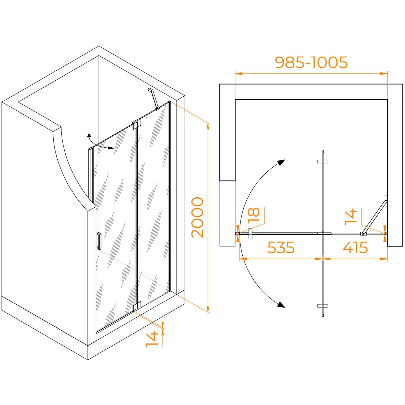 Душевая дверь RGW (РГВ) Hotel 100x200 см HO-014 хром цвет, прозрачное стекло 8 мм, EasyClean (350601410-11)