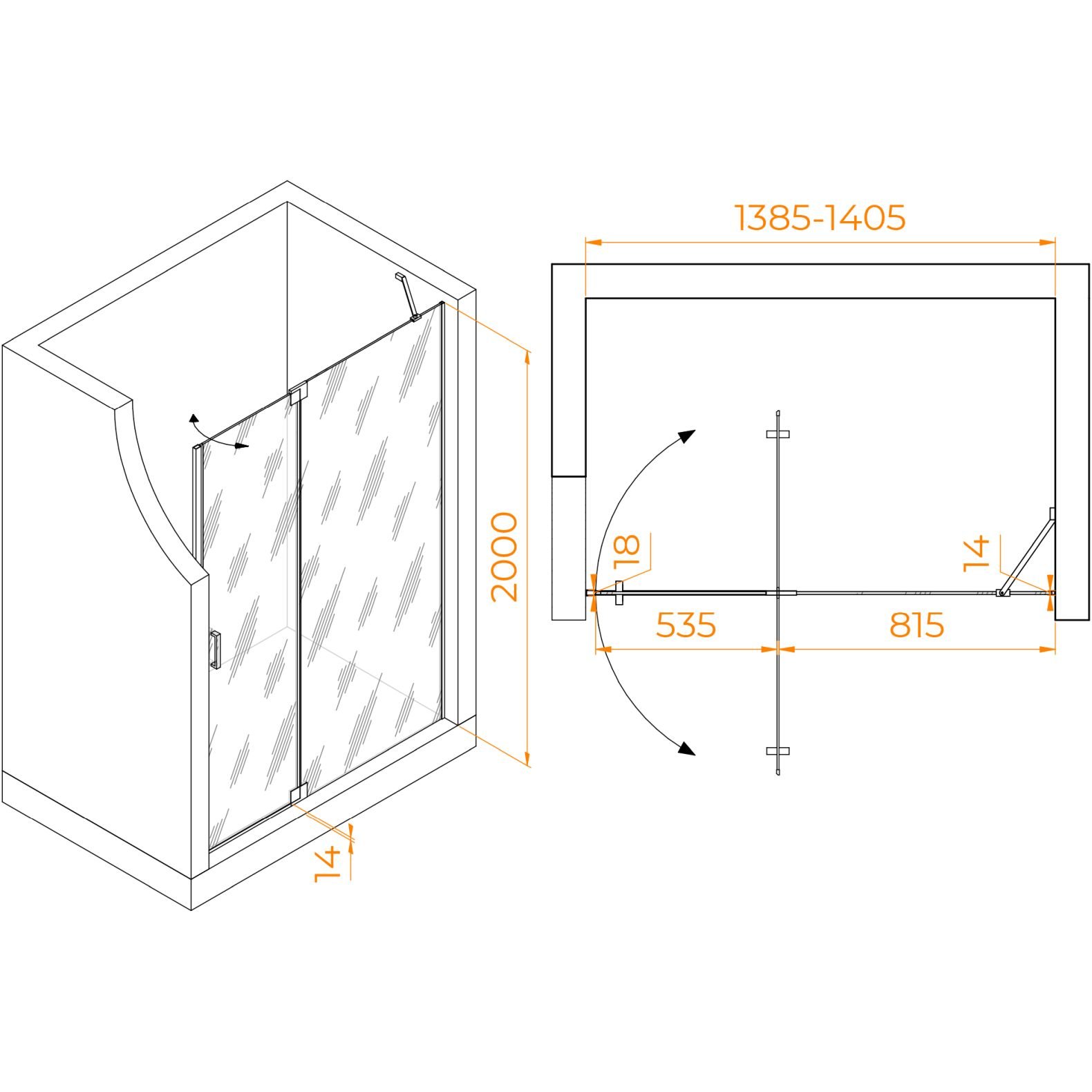 Душевая дверь RGW (РГВ) Hotel 140x200 см HO-014 хром цвет, прозрачное стекло 8 мм, EasyClean (350601414-11)