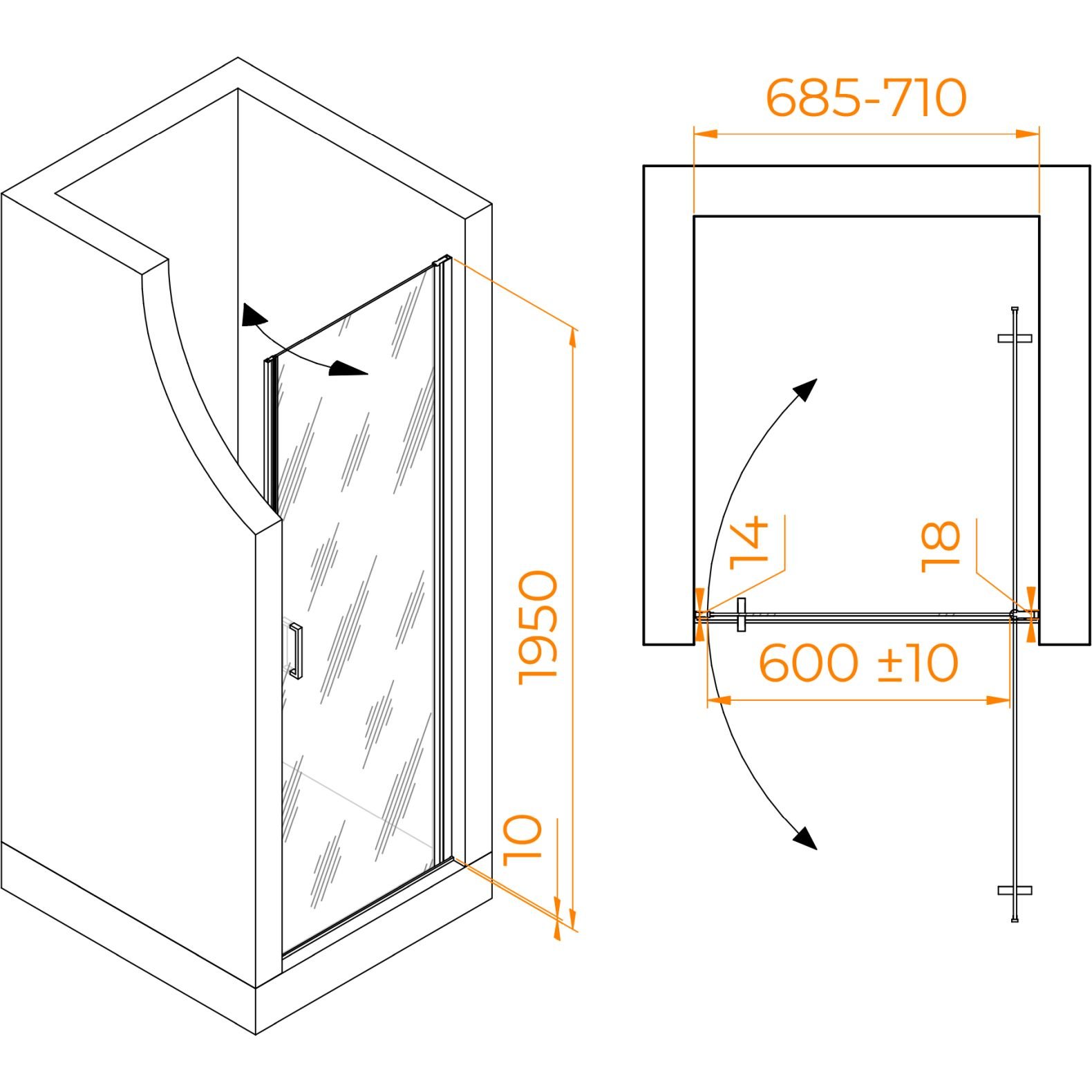 Душевая дверь RGW (РГВ) Leipzig 70x195 см LE-003 хром цвет, прозрачное стекло 6 мм, EasyClean (351200307-11)