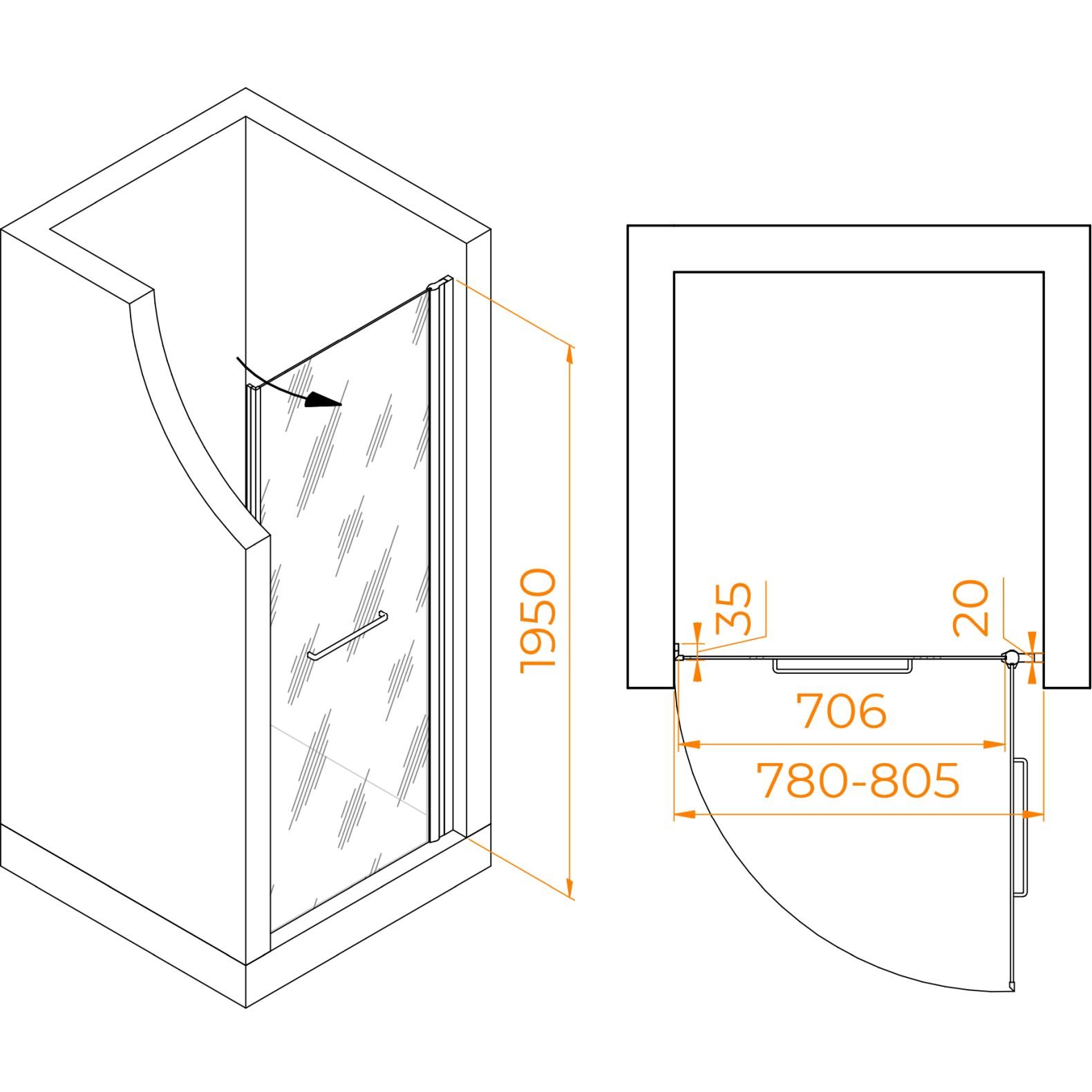 Представляем Вашему вниманию лаконичную распашную душевую дверь из серии Passage. Данная модель представлена в широкой размерной сетке. Возможность выбора размера подстраивается под различные параметры и характеристики Вашей ванной комнаты. Распашные двери-это про свободу и легкость. Ручка двери выполнена из нержавеющей стали черного цвета, петля-черный цинк, опорный стержень из черной нержавеющей стали. Надежная толщина стекла - 6мм, рассчитанная на активное использование, - идеальное решение для большой семьи! Технология Easy Clean защищает поверхности и избавляет от известкового налета.