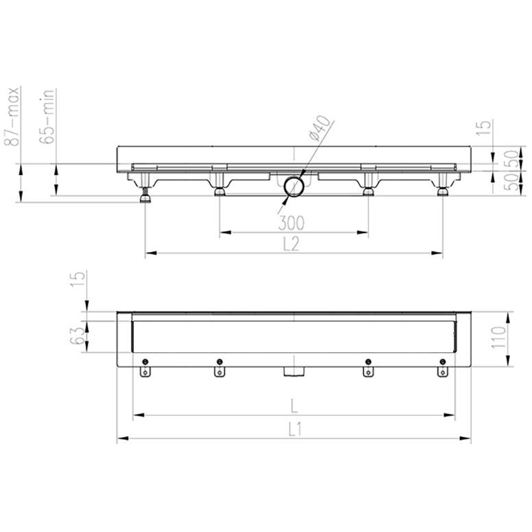 Нижняя часть и рамка желоба изготовлена из PP и PS, решетка изготовлена из нержавеющей стали DIN 1.4301, с возможностью нагрузки K3 (до 300 кг).