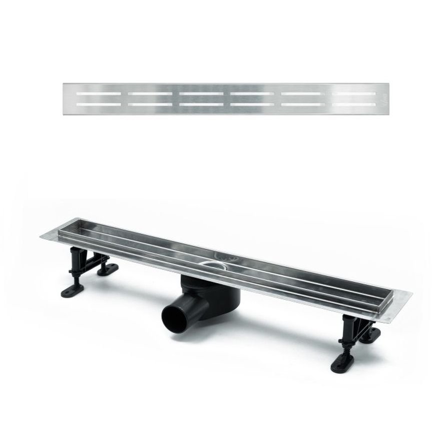 Комплектация:водоотводящий желоб из нержавеющей стали; декоративная панель double gap; поворотный сифон DN50, выход вбок; комплект регулируемых опор; стакан с мембраной; улавливатель волос и мусора; гидроизоляционная лента; сервисный ключ. p>