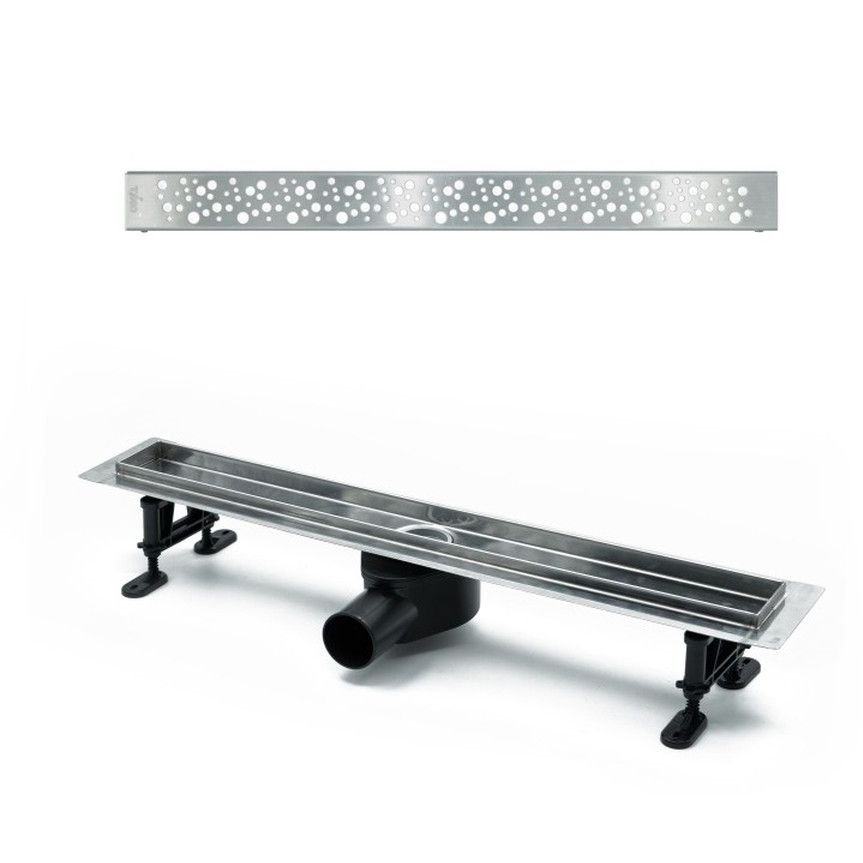 Комплектация:водоотводящий желоб из нержавеющей стали; декоративная панель drop; поворотный сифон DN50, выход вбок; комплект регулируемых опор; стакан с мембраной; улавливатель волос и мусора; гидроизоляционная лента; сервисный ключ. p>