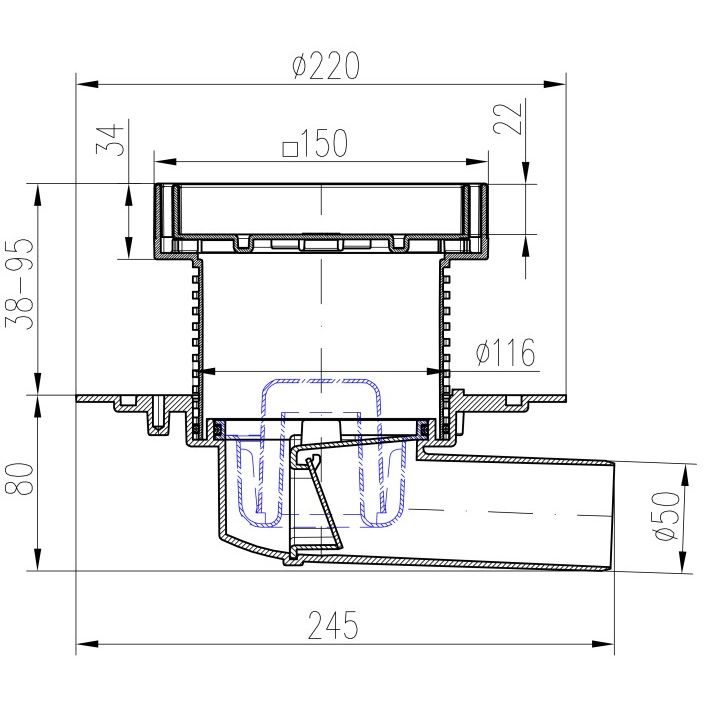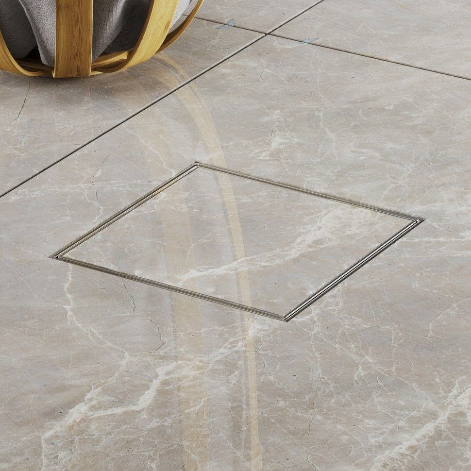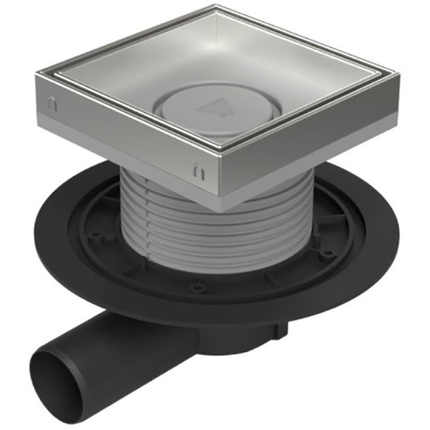 Компактный размер трапа – всего 150х150 мм, а конструкция практически незаметна на полу благодаря тому, что плитка устанавливается прямо в решетку.