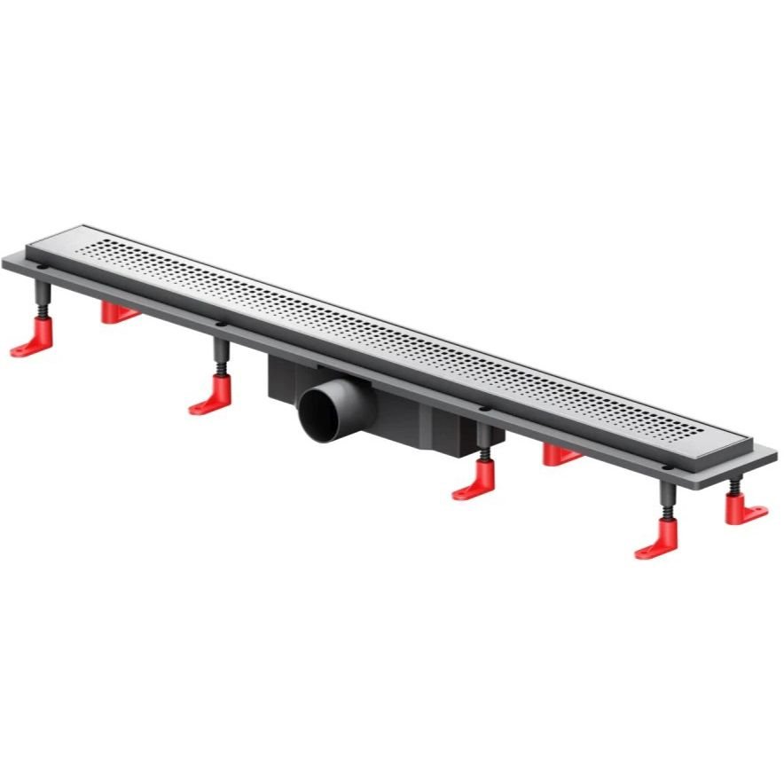 Продукт обладает низкой высотой монтажа и возможностью регулировки, что предполагает экономию бюджета при заливке пола. Трап имеет инновационную конструкцию решетки с фильтром, что значительно увеличивает межсервисный интервал.