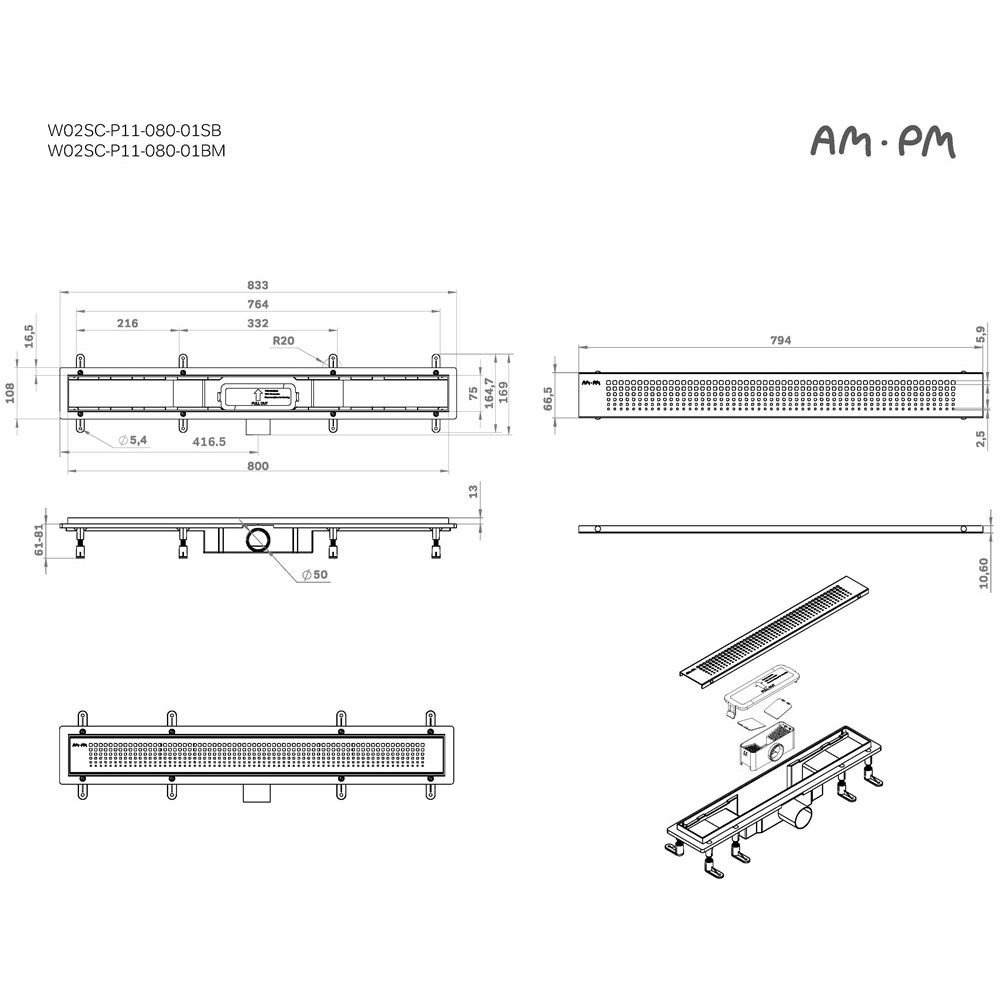Трап для душа Am.Pm (Ам.Пм) PrimeFlow линейный универсальный затвор Cut Gradient 80см цвет сталь матовый W02SC-P11-080-01SB