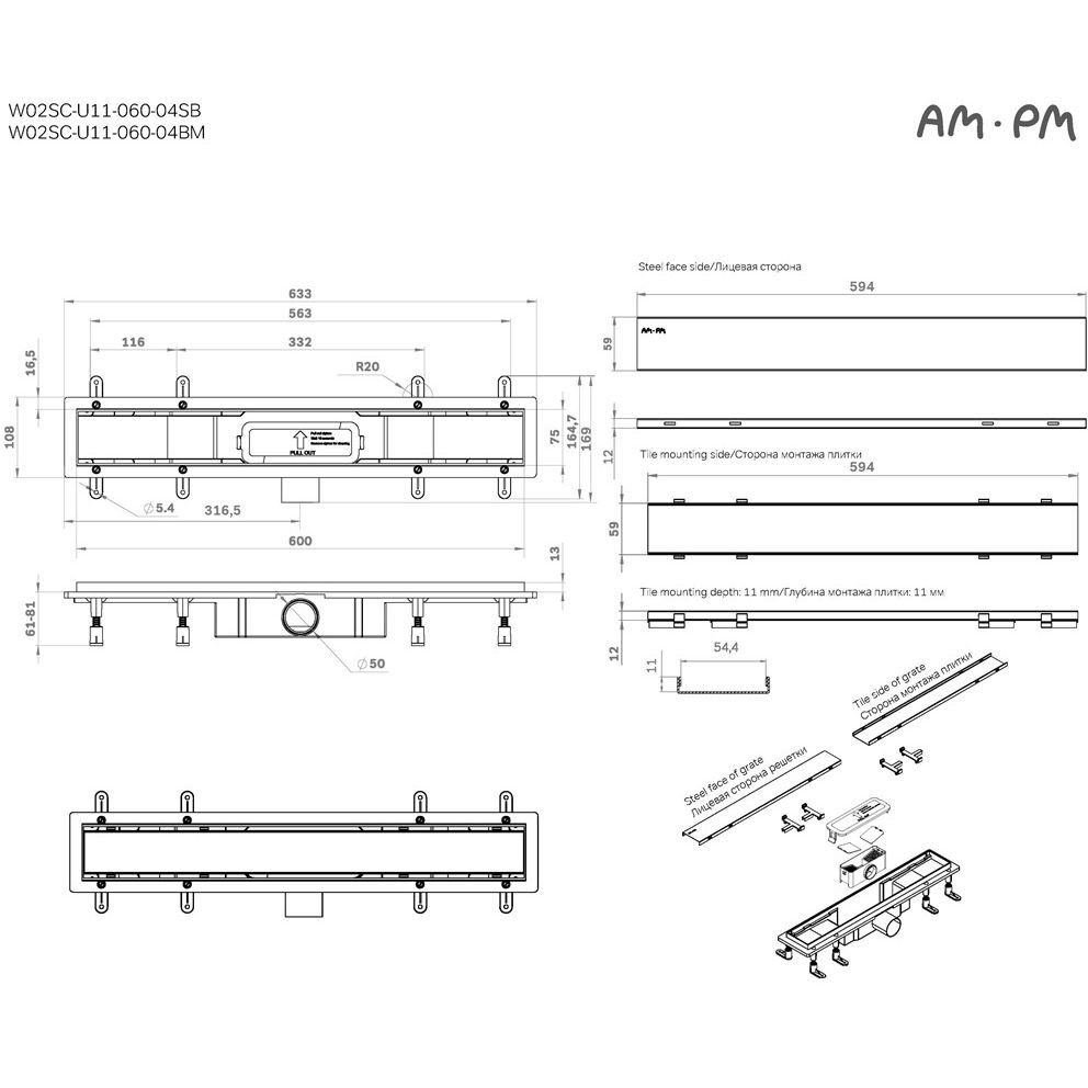 Доставка Трап для душа Am.Pm (Ам.Пм) PrimeFlow линейный универсальный затвор Tile 60см цвет черный матовый W02SC-U11-060-04BM из Москва в районы и города ЮВАО, ЮЗАО, ЮАО, Новомосковский АО, Одинцово, Подольск, Щербинка, Троицк, Строительный рынок Славянский мир, 41-й км МКАД, бывшая Мельница, Красногорск, Домодедово, Тёплый стан, Коммунарка, Мосрентген, Видное, Мамыри, Краснознаменск