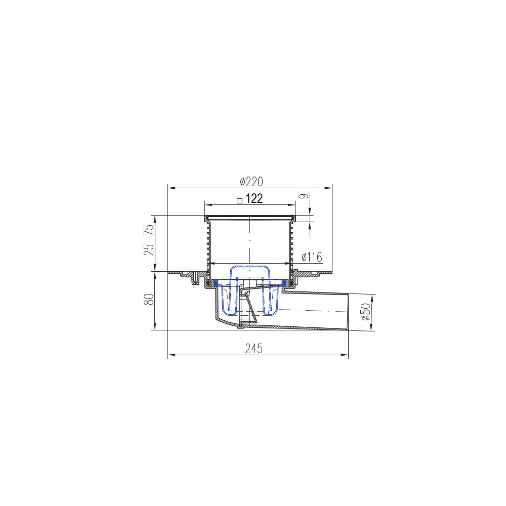 Трап для душа Azario (Азарио) пластиковый D50 боковой слив c воротником Нептун 122х122 мм хром AZ-425 X L