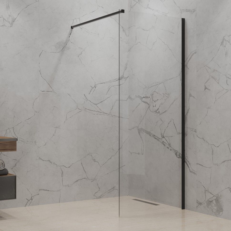 Душевая перегородка без рисунка PAINI позволяет комплексно подойти к обустройству безбарьерной зоны в ванной комнате. Визуальная легкость конструкции обеспечивается сочетанием пристенного профиля из анодированного алюминия с прочным покрытием черного цвета и закаленного стекла. Лаконичный дизайн, современные материалы, а также простота в уходе и безопасность – все это делает ширмы PAINI оптимальным решением для обустройства душевой зоны.