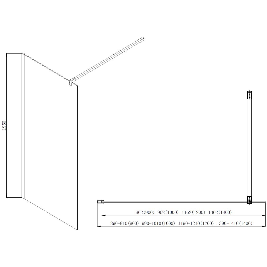Душевая перегородка Walk-in прозрачное стекло 8 мм, Easy Clean кронштейн 1000мм, профиль серебро