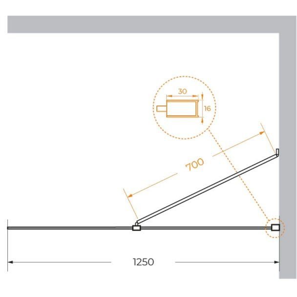 Душевая перегородка универсальная с односторонним входом, стекло прозрачное, профиль чёрный матовый