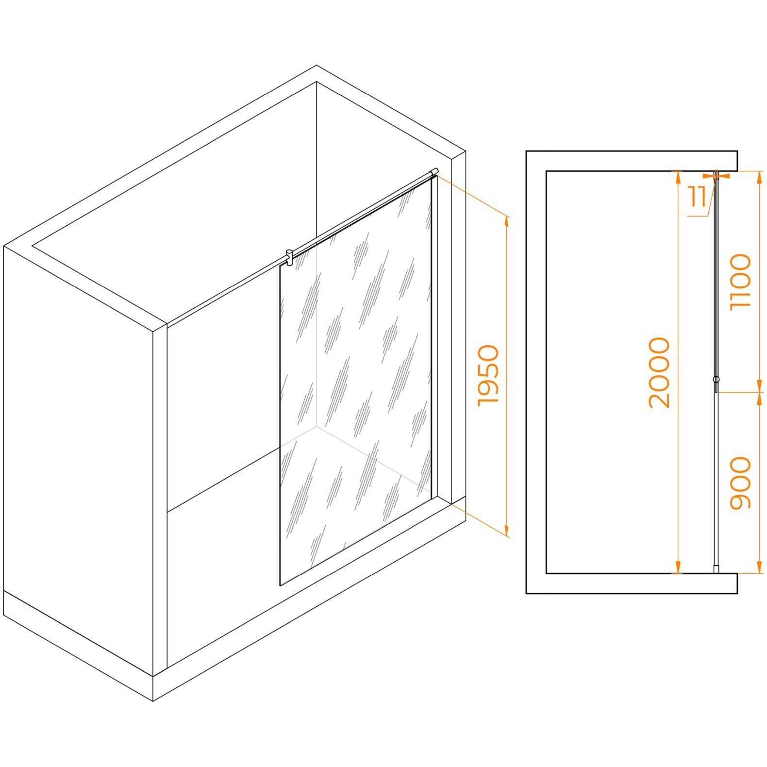 Душевая перегородка RGW (РГВ) Walk In 110x195 см WA-033 хром цвет, прозрачное стекло 6 мм, EasyClean (351003311-11)