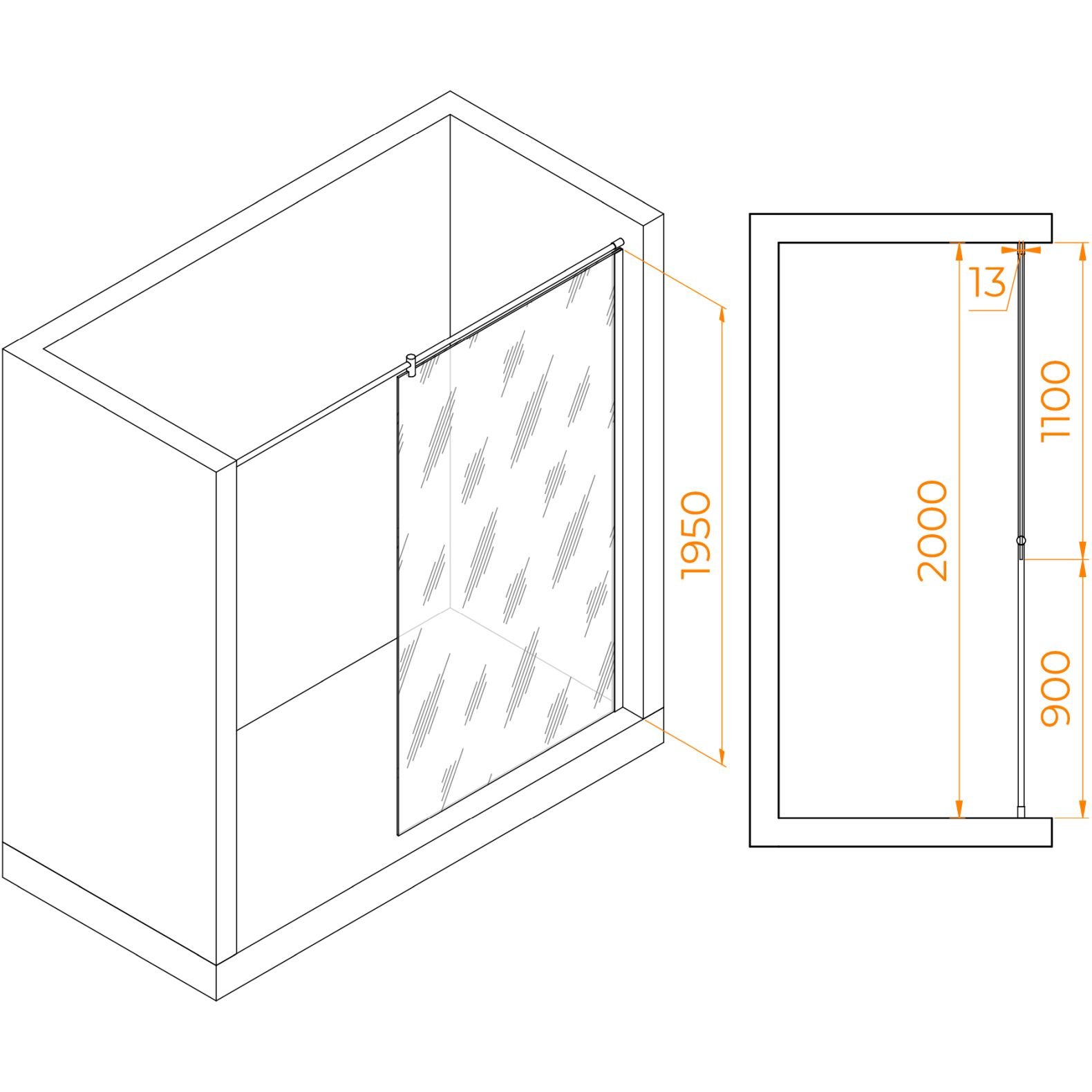 Душевая перегородка RGW (РГВ) Walk In 110x195 см WA-034 хром цвет, прозрачное стекло 8 мм, EasyClean (351003411-11)