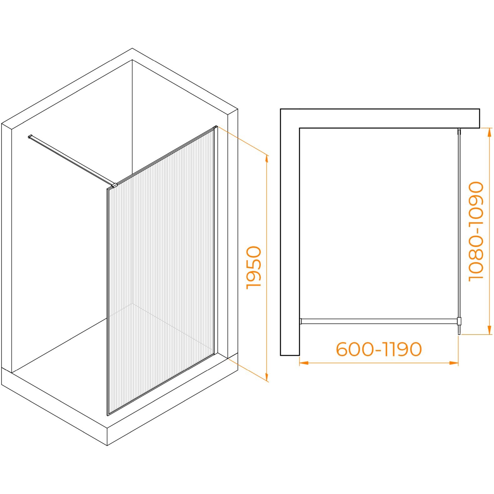 Душевая перегородка RGW (РГВ) Walk In 110x195 см WA-08 хром цвет, Ribbed (ребристое) стекло 8 мм, EasyClean (06100811-151)