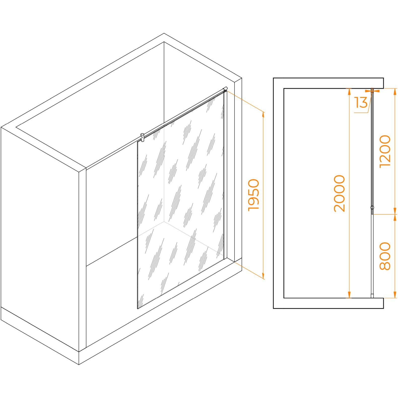 Душевая перегородка RGW (РГВ) Walk In 120x195 см WA-034 хром цвет, Матовое стекло 8 мм, EasyClean (351003412-21)
