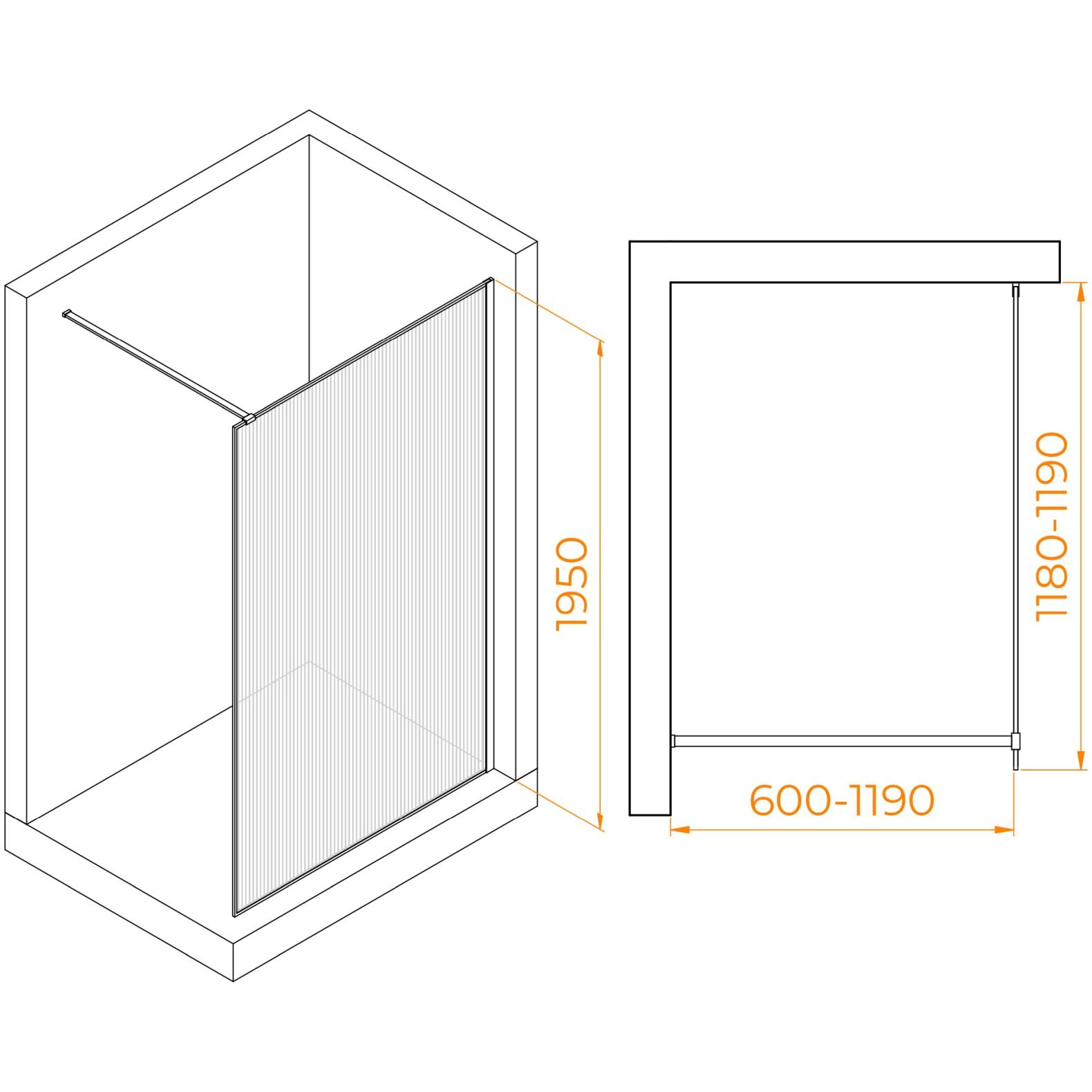 Душевая перегородка RGW (РГВ) Walk In 120x195 см WA-08-G золото цвет, Ribbed (ребристое) стекло 8 мм, EasyClean (06100812-156)