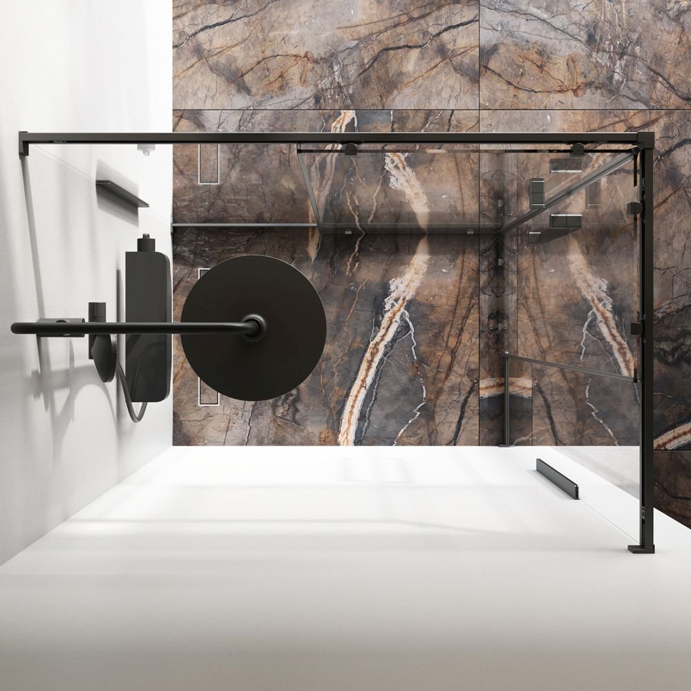 Премиальное качество: анодированные профили из алюминия, двойные металлические ролики и ручки, ударопрочное закаленное стекло 6 мм, стеновые кронштейны в комплекте позволяют компенсировать неровности стен до 4 мм. Высота ограждения 200 см – с заботой о высоких людях.
