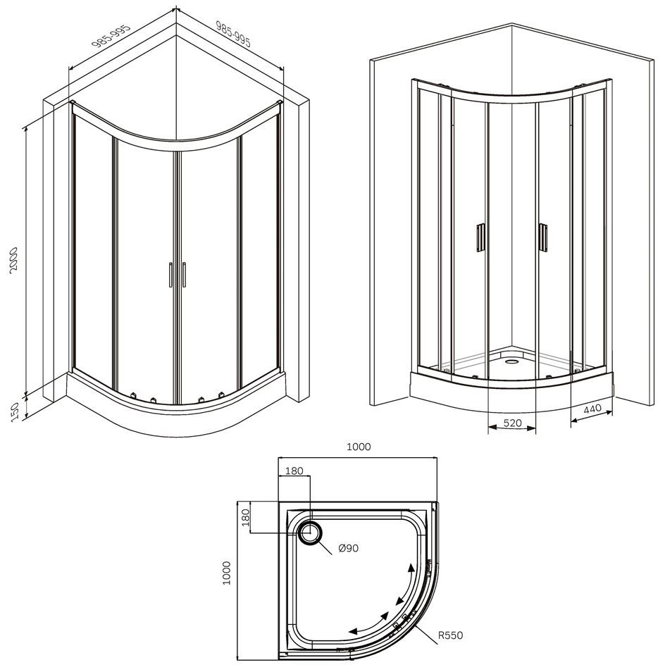 Система крепления профилей QuickFix. Простой и быстрый монтаж душевого ограждения. Надежные хромированные двойные ролики – Не менее 150 000 открываний. Прозрачное закаленное стекло толщиной 5 мм. Ручка из анодированного алюминия. Поддон приобретается отдельно