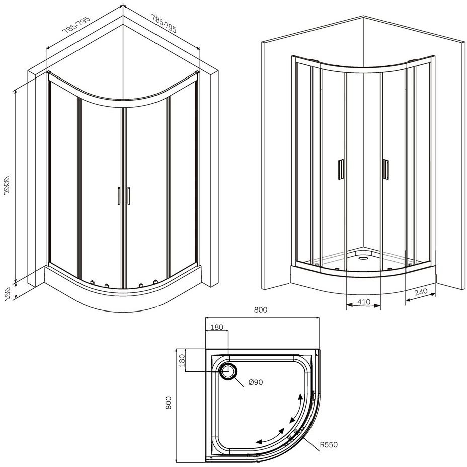 Совместимо с душевым поддоном - артикулW90T-401-080W.