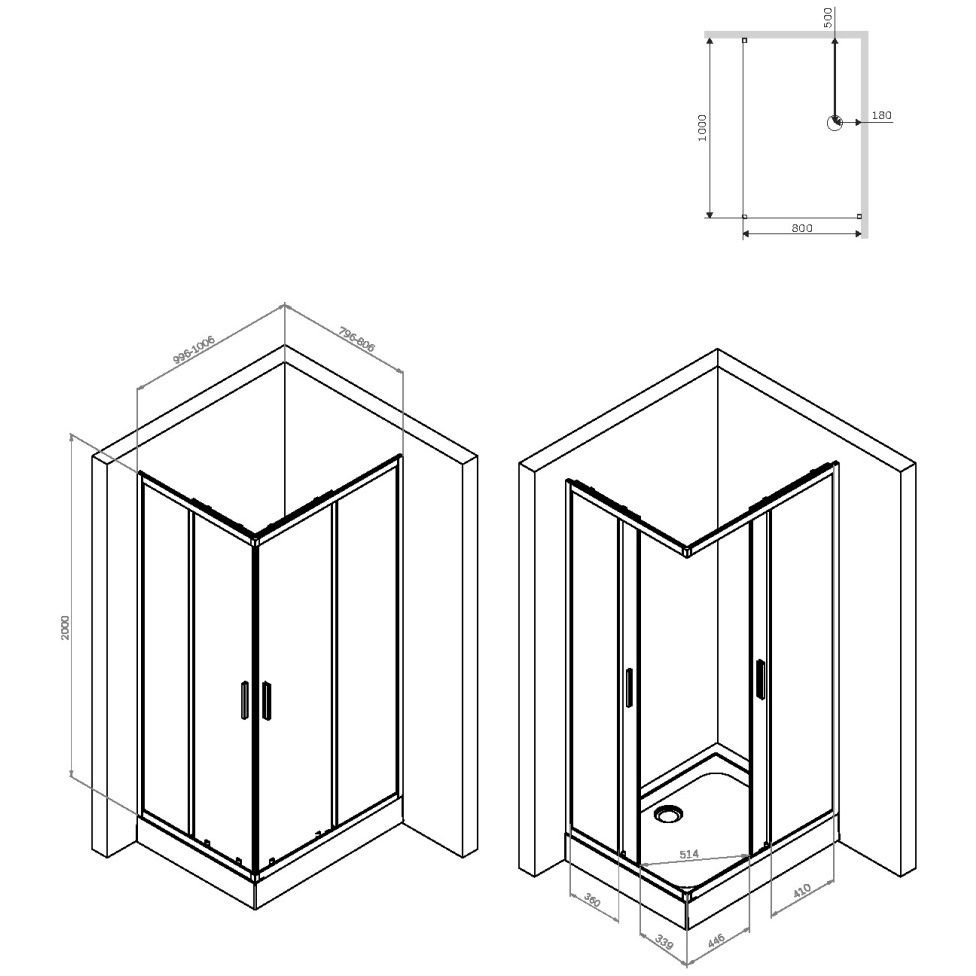 Премиальное качество: анодированные профили из алюминия, двойные металлические ролики и ручки, стекло 5 мм, предустановочные профили в комплекте позволяет компенсировать неровности стен до 15 мм.