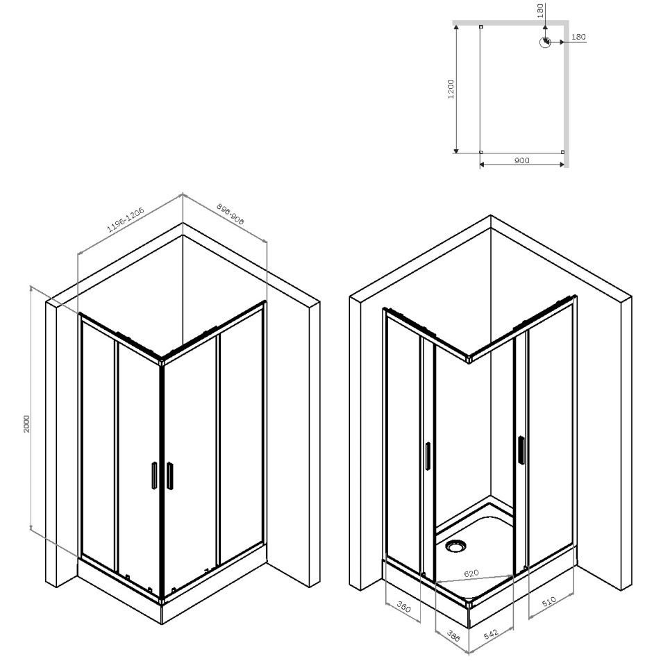 Душевое ограждение совместимо с поддоном - артикул W90T-404-12080W.