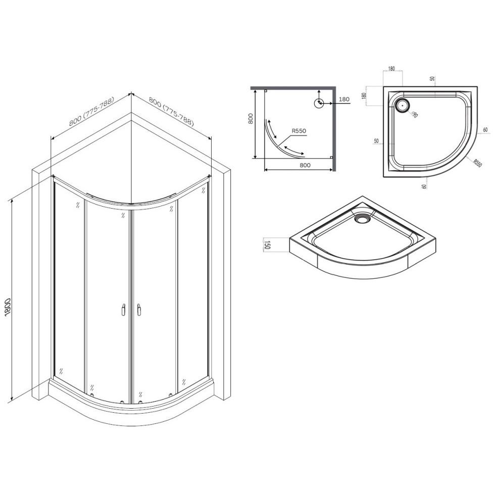 Двери душевой кабины оснащены матовыми пластиковыми ручками, чтобы уменьшить появление отпечатков пальцев на поверхности. В комплект входит акриловый поддон с идеально гладкой поверхностью. Поддон оборудован съемным экраном, что позволит с легкостью обслуживать сифон и проводить проверку пространства под поддоном.