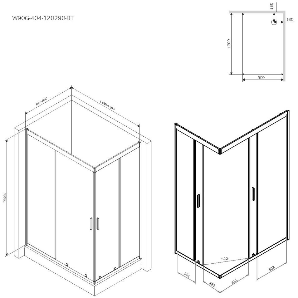 Душевое ограждение совместимо с поддоном - артикул W90T-404-12080W. Приобретается отдельно.