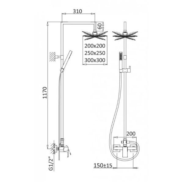 Душевая система Shevanik (Шеваник) S9136H, черный